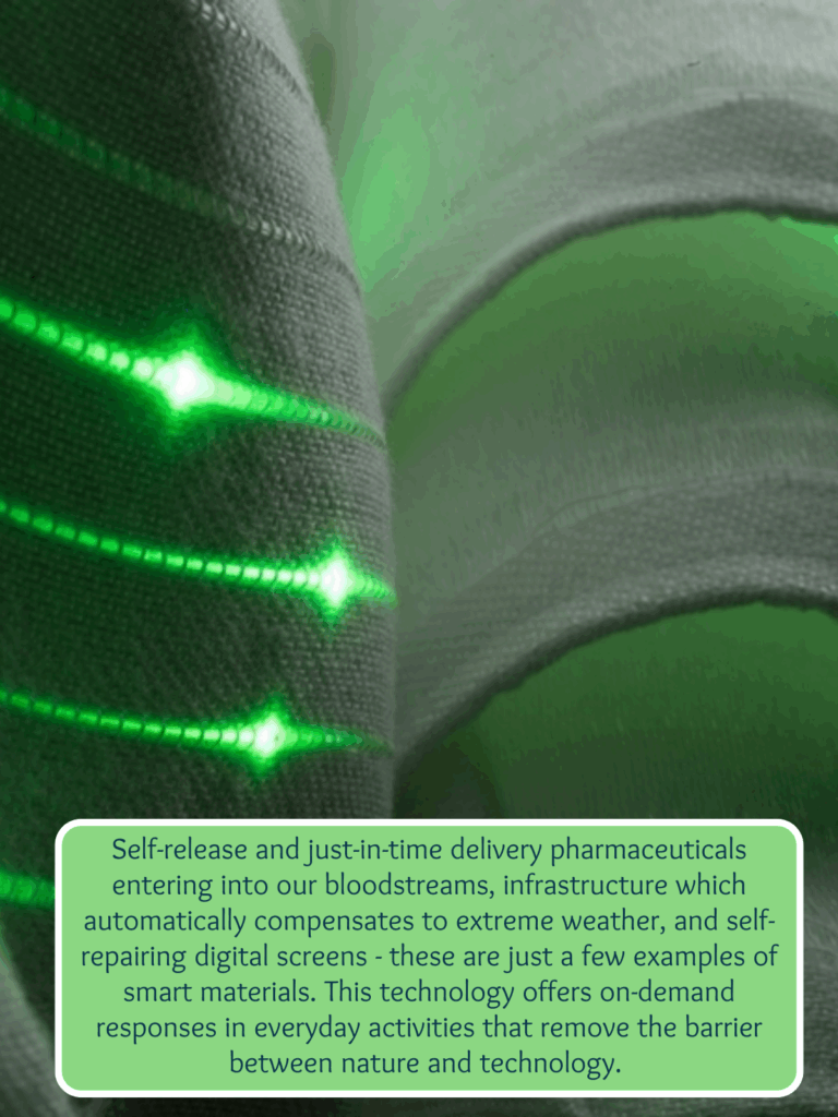The push dazzles with innovation – fabrics that monitor health, buildings that adapt to climate, materials that behave like magic. The pull invites us to see these developments as a reconnection with nature’s intelligence.